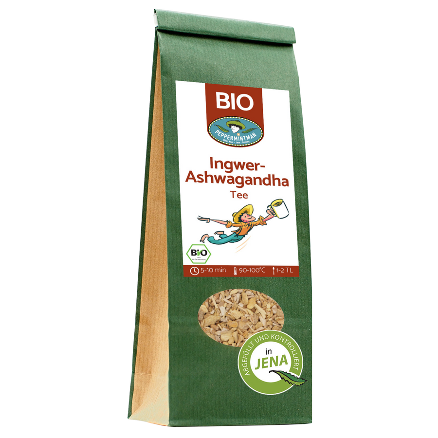 Tauchen Sie ein in die Welt der natürlichen Aromen mit unserem Bio Ingwer-Ashwagandha-Tee. Diese besondere Mischung lädt dazu ein, die kraftvolle Kombination von Bio-Ingwer und Bio-Ashwagandha zu entdecken und genießen. Unsere sorgfältig ausgewählten biologischen Ingwerwurzeln und Ashwagandhapflanzen werden schonend verarbeitet, um die reinen Aromen dieser beiden natürlichen Inhaltsstoffe zu bewahren. Beim Aufbrühen entfaltet der Tee einen einzigartigen Geschmack, der die scharfe Wärme des Ingwers mit den subtilen Tiefen von Ashwagandha harmonisch verbindet. Der Bio Ingwer-Ashwagandha-Tee eignet sich hervorragend für Momente der Entspannung und des Genusses. Ob als heißes Getränk für beruhigende Augenblicke oder als kreative Zutat für erfrischende Eistees, dieser Tee bietet Ihnen eine vielseitige Geschmackserfahrung.