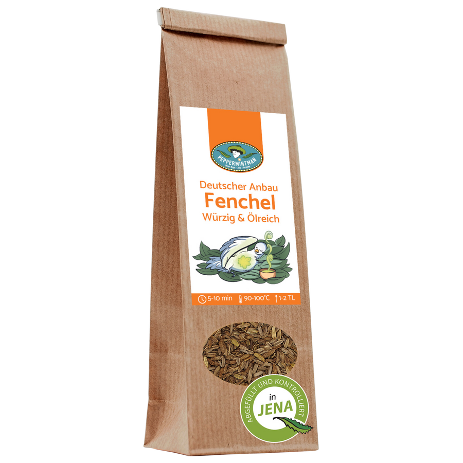 Découvrez le monde aromatique de nos graines de fenouil cultivées en Allemagne – une source incomparable de goût naturel et de rafraîchissement. Avec un arôme sucré et anisé, notre thé au fenouil promet une expérience gustative particulière. Regardez le thé prendre une douce couleur vert clair et calmer vos sens. Le fenouil n'est pas seulement un délice culinaire, mais aussi une partie intégrante de la cuisine indienne, lui conférant un caractère unique. Mais l’importance du fenouil va bien au-delà de son utilisation dans les recettes : son histoire est imprégnée de mysticisme et de superstition. Il était autrefois considéré comme un outil puissant pour chasser les démons et était vénéré comme un porte-bonheur pour les nouveau-nés. Dans les cultures lointaines et avancées de l’Égypte ancienne, de la Chine et de l’Arabie, le fenouil était un produit apprécié et trouvait de nombreuses utilisations dans les arts de guérison.